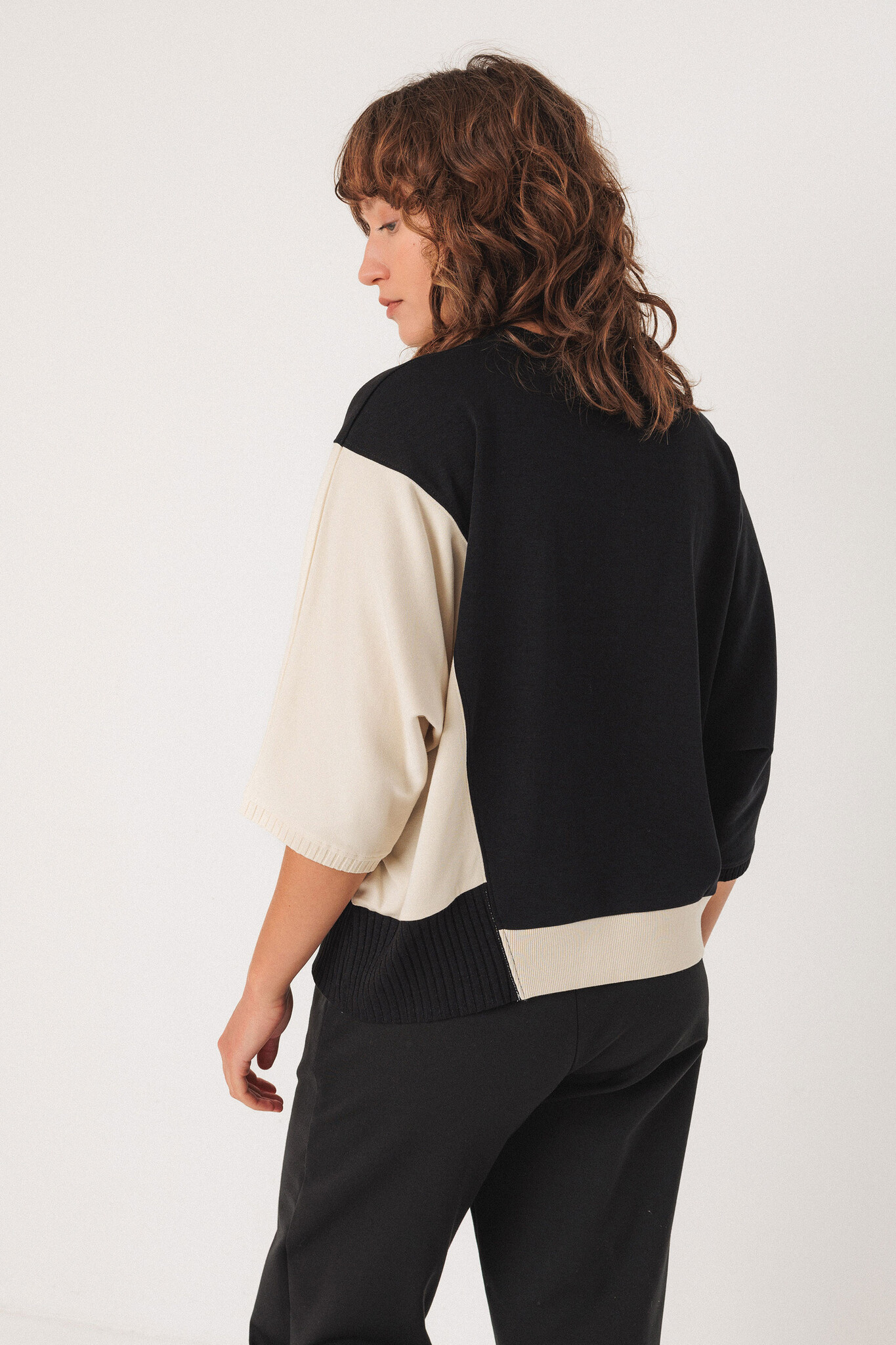 SKFKALORIA - noir C$110.00 Sans les taxes En stock Small Medium LargeSize: *SmallMediumLargeAjouter au panierLogin pour la liste de souhaitsPayer directementDescriptionPartagerAmple t-shirt à manches chauve-souris affichant une coupe asymétrique, des empiècements contrastants et des bordures côtelées. Facebook WhatsappAjouter à la liste comparative