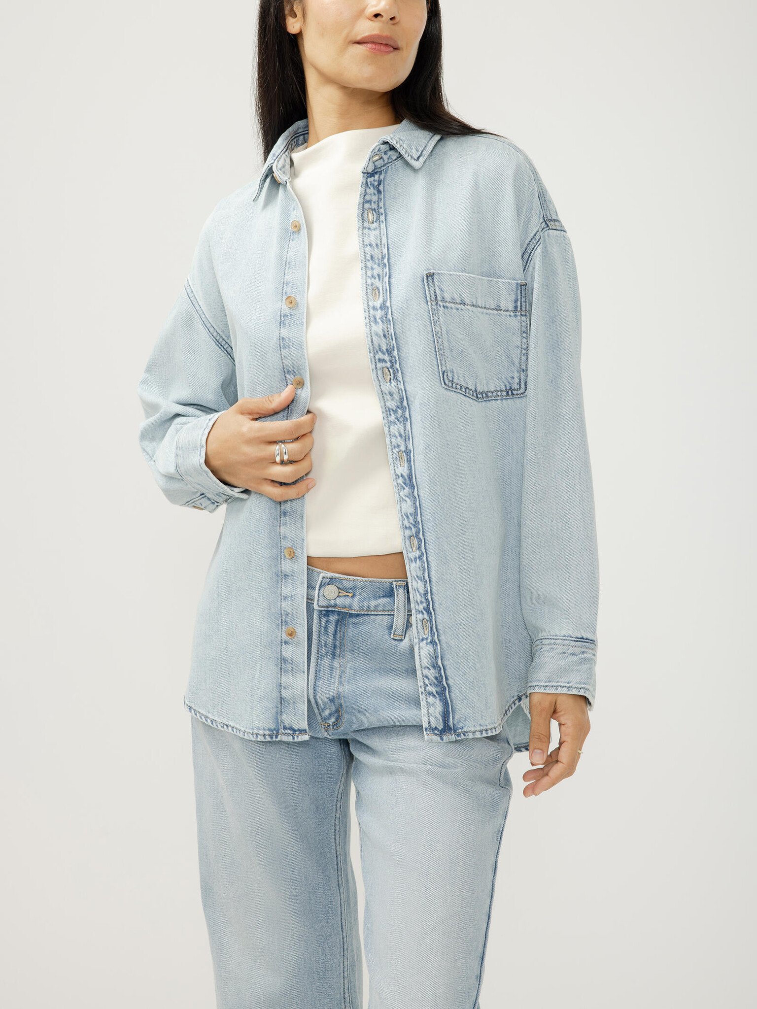 Une chemise en jean décontractée, confectionnée dans un denim ultra-doux et léger sans stretch qui conserve sa forme tout en restant confortable. Sa coupe ample, sa fermeture boutonnée et sa poche poitrine lui confèrent un style décontracté au quotidien.