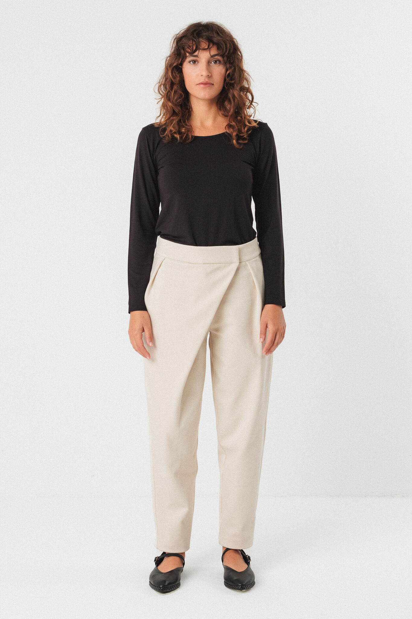SKFKGOIANE -crème C$170.00 Sans les taxes En stock 36 38 40 42Size: *36384042Ajouter au panierLogin pour la liste de souhaitsPayer directementDescriptionPartagerPantalon coupé à la cheville avec un large pli sur l’avant. Braguette avec zip et bouton devant, poches sur les coutures de côté et fausses poches au dos. Facebook WhatsappAjouter à la liste comparative