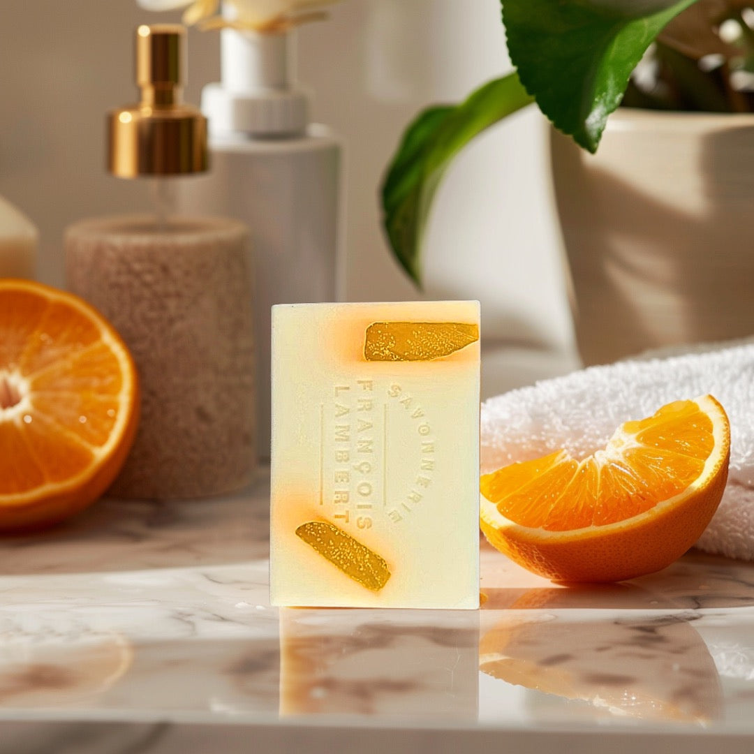 Ce savon marie les notes vives de tangerine avec la douceur apaisante de la camomille, enrichies par des touches envoutantes de musc et un soupçon de patchouli.