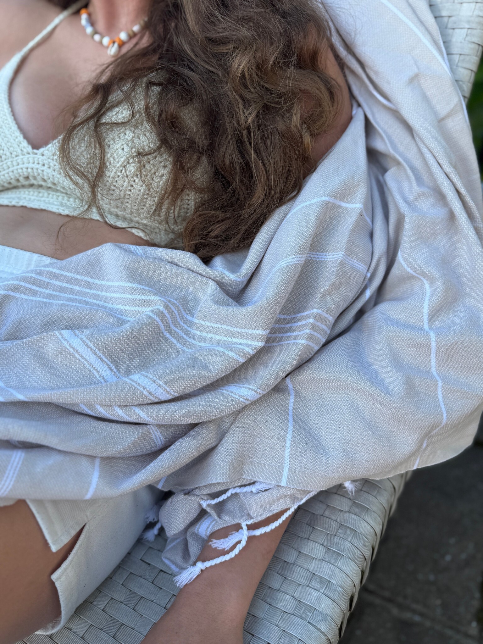 Tissée à la main à partir d’un mélange haut de gamme de 100 % bambou et coton éco‑certifiés, elle est douce, à séchage rapide et antisable. Ses dimensions généreuses de 90 × 170 cm garantissent une couverture optimale, tandis que son tissage léger la rend incroyablement polyvalente.